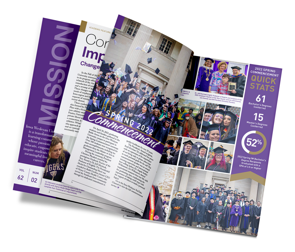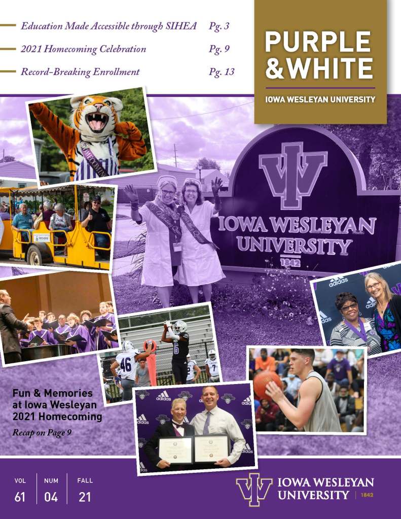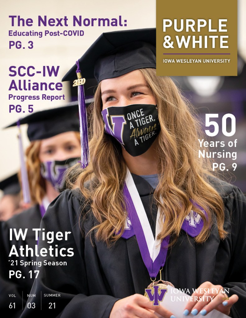 The Purple & White was the semiannual alumni magazine for Iowa Wesleyan University, with